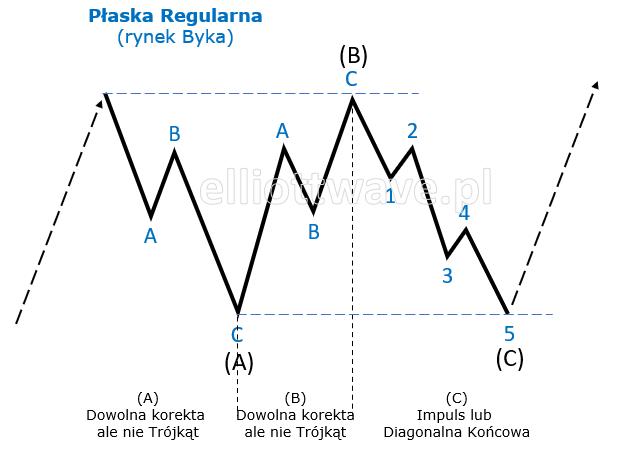 Fala B może skorygować od 90% do 105% fali A – jeśli znosi mniej niż 90%, formacja nie jest uznawana za Płaską.